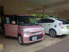 問題はここから。この2台が停車していましたので、当然ながら白いプリウス(先代型ですが)を貸してくれると思っていたのに、手前のスペーシアに乗れと・・・。しかも「プリウスに乗りたければ追加でUSD50/day払え」「この車は1000ccだ」と主張されました。その言葉と話し方から、確信犯であり、誠意は全く感じませんでした。