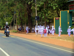 - イスラム系の女子生徒が一斉下校しているところです。スリランカの学生は男女とも白い制服が基本で、どこに行ってもきれいな白い制服を着た生徒さんに出合います。