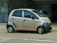- おおお。何年か前に話題になったインドのTATAの発売している超低価格車Nano。たしか29万円だったような。あまりに機能がなさすぎてそれほど売れず、多少装備を増やした・・・という話までは聞いたことがあります。実物を見たのは初めてですが、それにしてもちっちゃいタイヤです。