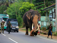 - 警察に警護されながら、道路をゆったりと歩く像を見たのは初めてです。この週は各地のお寺で仏教のお祭りがある時でしたので、多分それに向かっているのでは?と思いました。