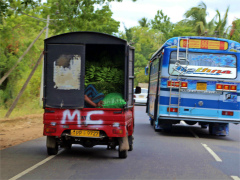 - スリーウィラーは、ものすごい数が走っているのですが、そのドライバーの多くは、自分たちの車が非力で遅いことを意識しているようで、普通の車の進路を意図して遮るようなことはしません。ですが、センターライン意識や、車線を守る意識は低いので、追い抜きをするときは「抜くから進路を変えないでね」と言う意味でクラクションを元気に鳴らしていくのがスリランカ流の走りです。