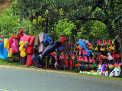 - しかもそれが多数続くのです。本気で「この地方の特産物はビニールの浮輪なのかナ?」と思えてしまうほど。でも、全く離れた山沿いを走っていてもやはり「ビニール製品が特産品に感じる露店続きの道」はありましたので、ある地方の特産物、というわけではなさそうです。それにしても謎ですが・・・見ていても楽しいです。外に出していてもスコール時にも心配はありませんし。