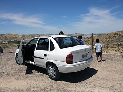 窓口氏に、空港ターミナルの隣の建物に徒歩で連れて行ってもらうとそこに今回借りる車がありました。ほとんど新車なのですが、全体にうっすらと埃がたまっていて、しばらくだれも使っていないような感じがしました。- でも、あれ?予約した車は