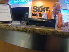 Sixt シェレメチェボ空港店の窓口氏。みるからに人のよさそうな、非常に穏やかで丁寧な方でした。ちなみに他に客も、係員もおらず、受付から車の案内まで全て一人で行っていました。周囲のレンタカーオフィスを見ても客がおらず、もしかするとロシア(というかモスクワ)でレンタカーを借りる、という行為自体が一般的ではないのかもしれません。-