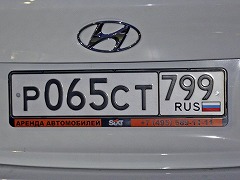- ロシアのナンバープレートは、アルファベット3文字+数字3文字。そこに地域コード3文字で構成されています。799はモスクワを表しますが、以前は77とか、79とか、197とか777などもありました。中でも777は高値で売買されることもあるとのこと。アルファベットはキリル文字の特有文字(БとかФとか)を除く12文字だけが使われているとのこと。