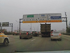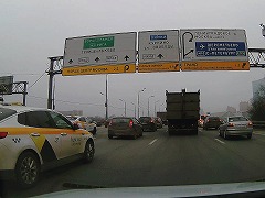 - 標識はかなりきちんと整備されています。当然、全てロシア語ですが、ここぞという場所にはラテン文字も併記されており、それほど困らないと思います。でも、車線がものすごく多いこともあり、地理感覚の無いまったくの素人が走るのはやはり難しいかも。