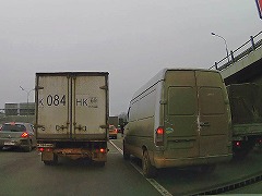 - この写真と下の写真は、ある支線からモスクワ環状道路МКАДへの合流点なのですが、何らかの理由により、目の前のМКАД本線が大渋滞を起こしていても、とにかく前に進みたいので、車線がぐちゃぐちゃになっています。目の前の白い車は車線を変更し左に行っていますが、右側の赤いVOLVOもこちらの車線、さらには隣の車線も狙っています。
