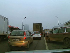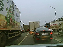 - 空いている高速道路ならいいのですが・・・、渋滞になり、なぜ多くの人が「モスクワの運転はやめなさい」というのか分かった気がします。