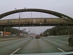 - ついでながら自分も左に入れてもらっています。こんなせめぎあいが合流地点で延々と続きます。とにかく「前へ前へ」「入れて入れて」の気持ちが出まくっています。ただし、こうしないといつまでも進めないので、結果的に自分も「前へ前へ」の仲間入りをしていました・・・。