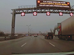 - この電光掲示板。「前が詰まっていたらスピード落とせ」という意味だと思います。他に、写真には撮れませんでしたが「飲酒運転はやめましょう」という標識もありました。とはいえロシアで飲酒運転が法律で禁止されたのは2010年。もっというと、2011年までロシアの法律ではビールは酒ではなく「食品」でした。ロシア人で毎日晩酌をする人の割合は意外と少ない、との統計も見たことがありますが、
