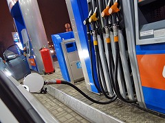 - ガソリンスタンドの使いかたは超簡単。車を止めて、勝手に給油し、支払いに行くだけ。